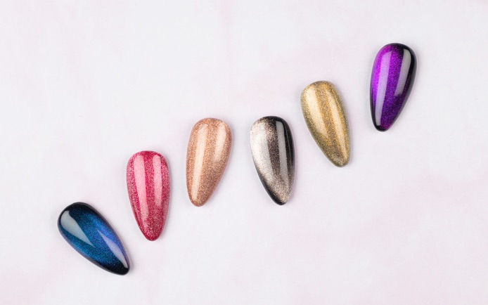 Un gel magnétique cat’s eyes aux nuances de turquoise, de bleu et de violet.